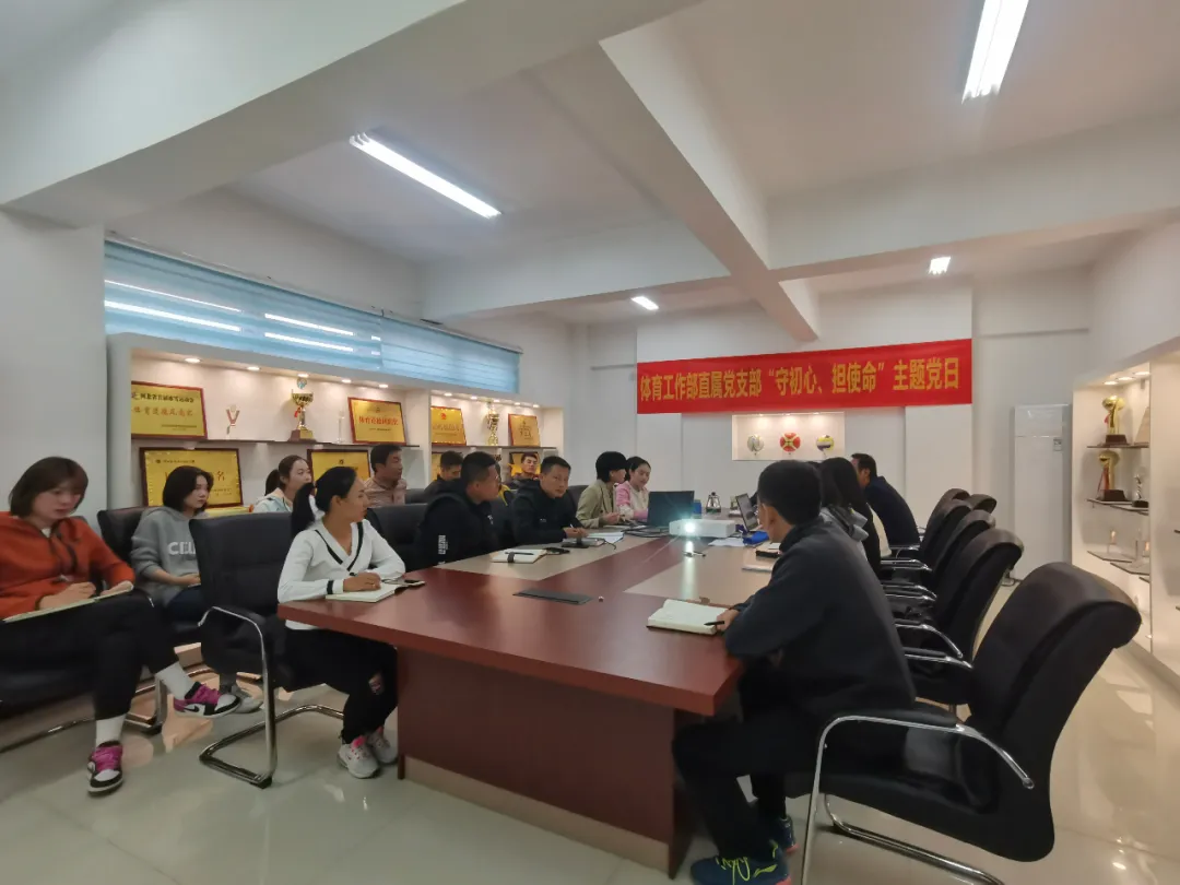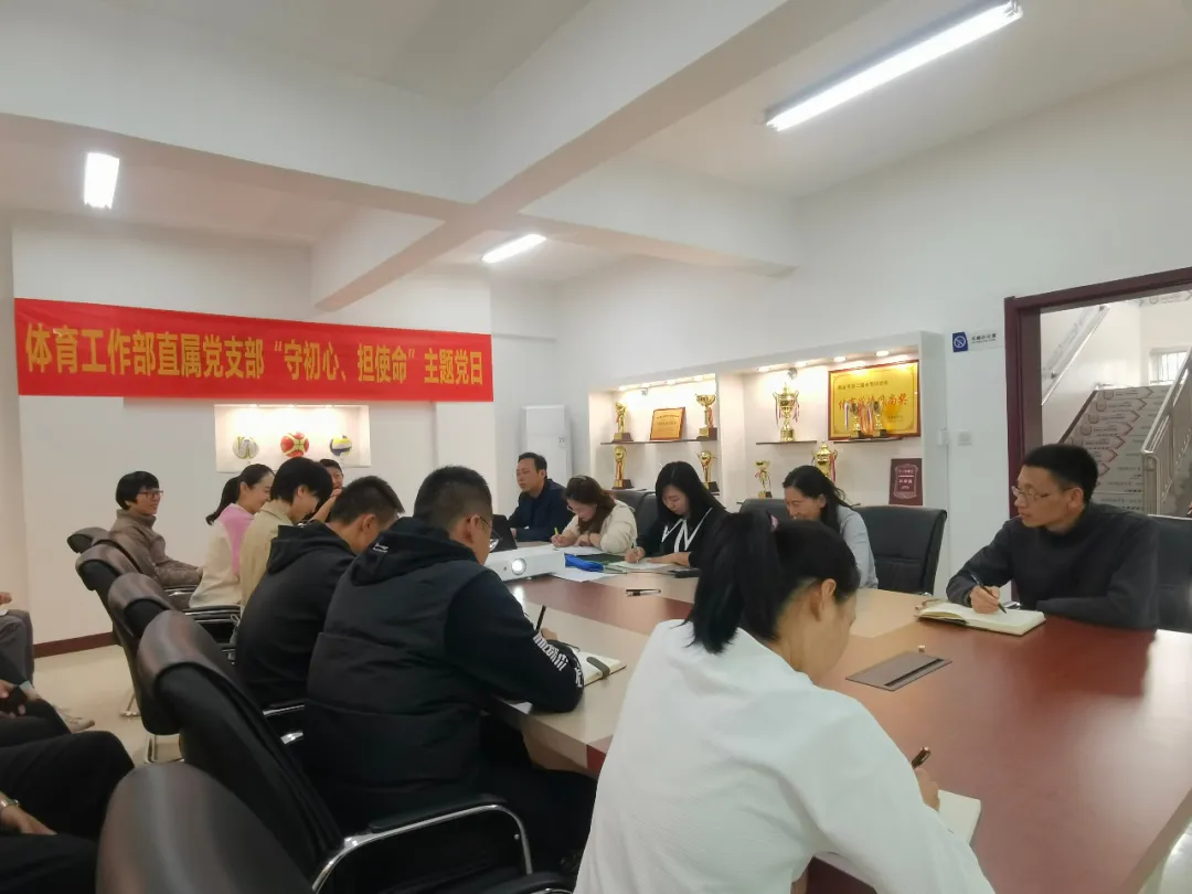 为深入贯彻市委和学院关于开展主题党日活动要求,9月15,体育工作部直属党支部以“守初心、担使命”为主题,开展主题党日活动。体育工作部直属党支部书记耿晓东主持会议,直属党支部全体党员参加本次活动。